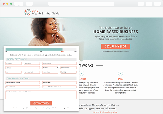 Each lead is delivered in real-time! This means that as soon as a prospect completes and submits their information on one of our home business opportunity websites (click on the image), it is immediately emailed to you. If you make contact with the lead immediately, they will be amazed you called so quickly.